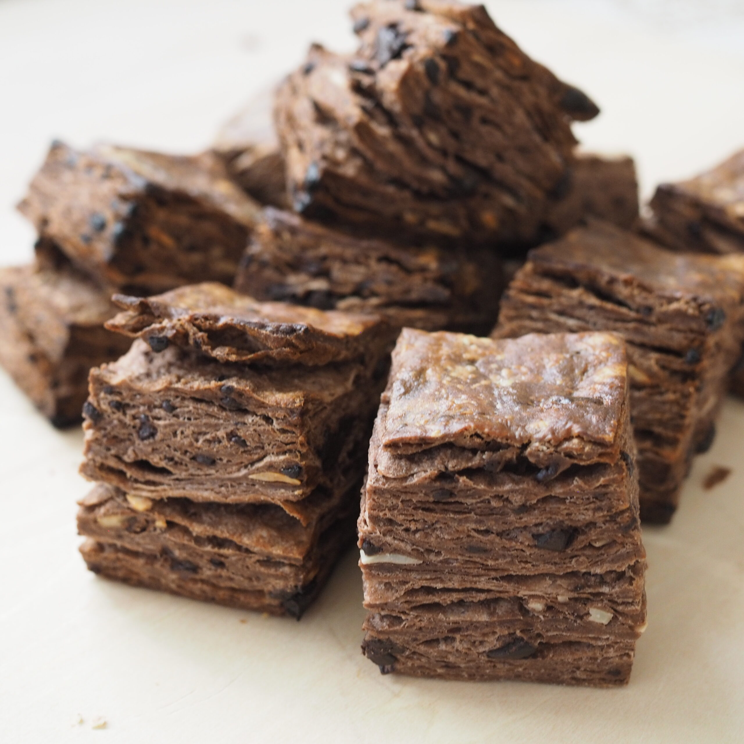 噛みしめると染み出る板チョコ、アーモンドの風味と食感がアクセントになって、パリっとした生地にぴったり✨おいひい😋